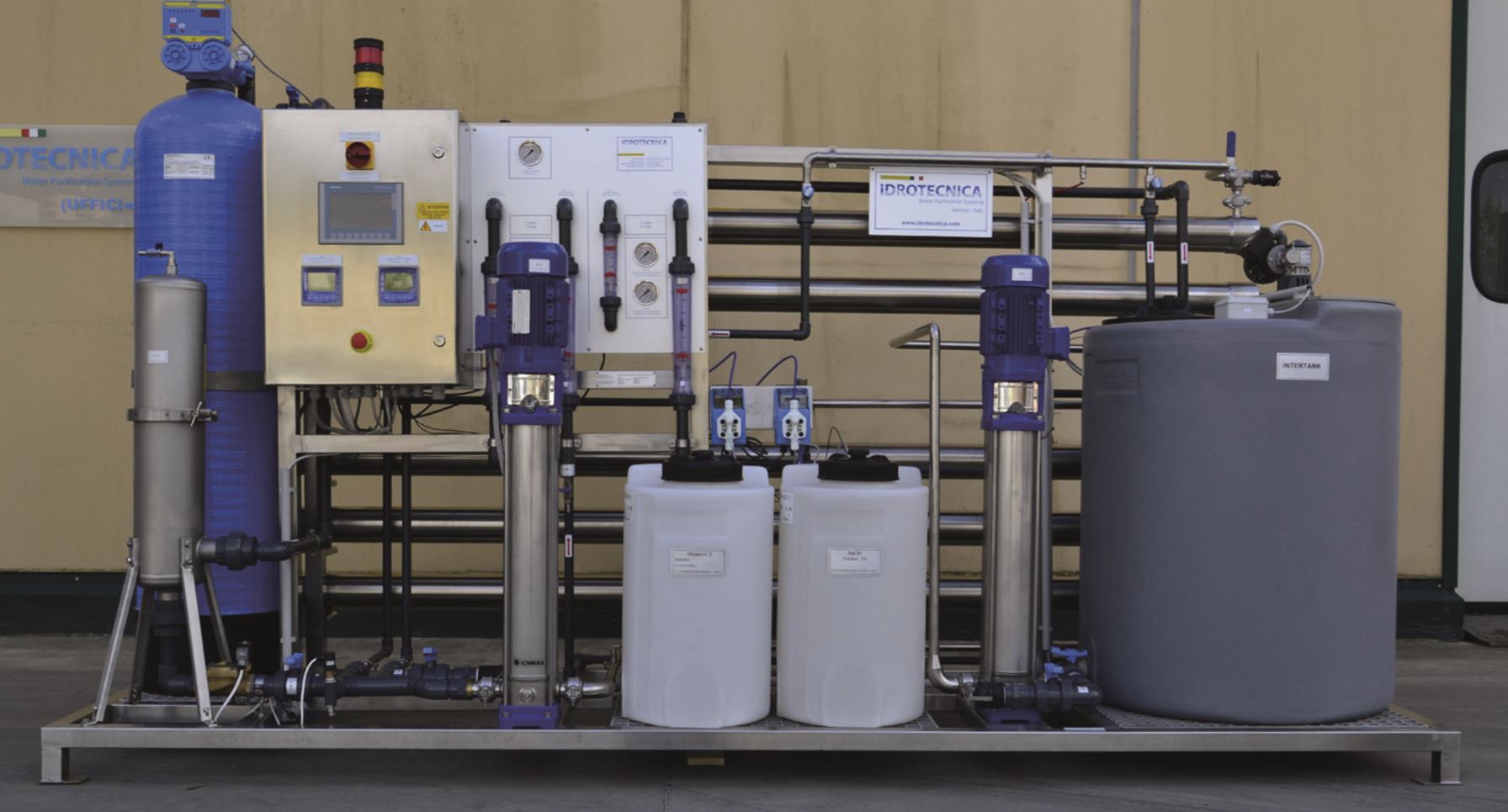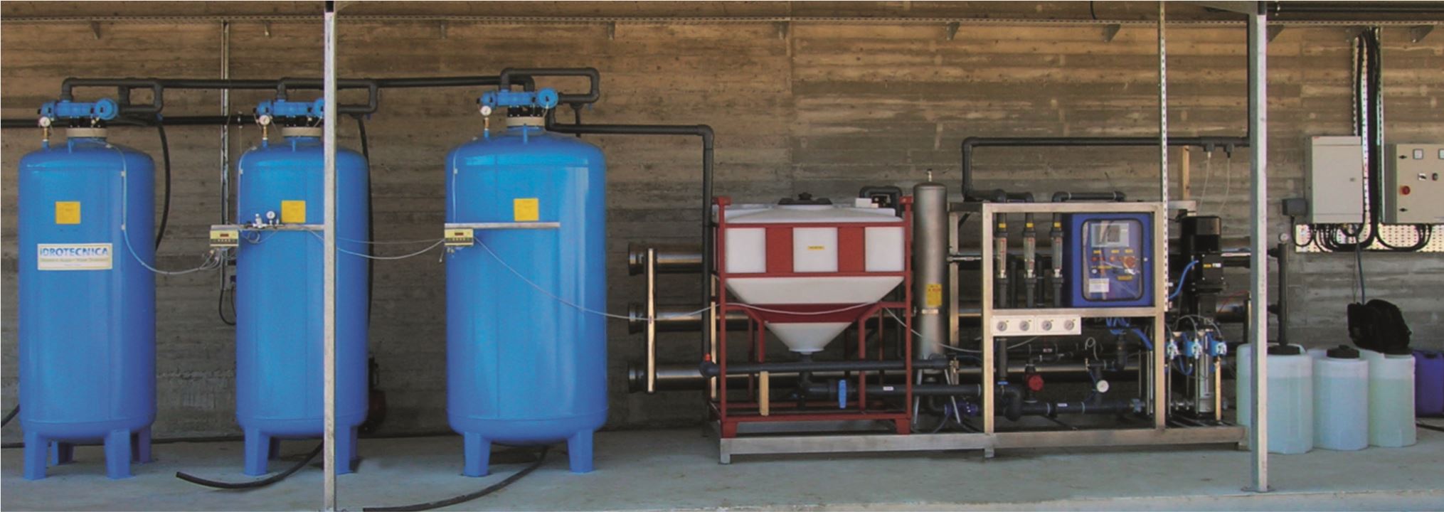 Reverse osmosis + Duplex softener + storage tanks