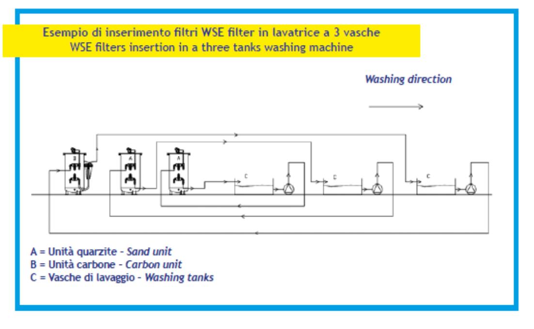 I filtri della serie WSE filter sono progettati e realizzati specificatamente per la filtrazione ed il riutilizzo dell'acqua delle vasche nelle macchine lavatrici.