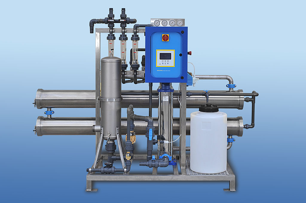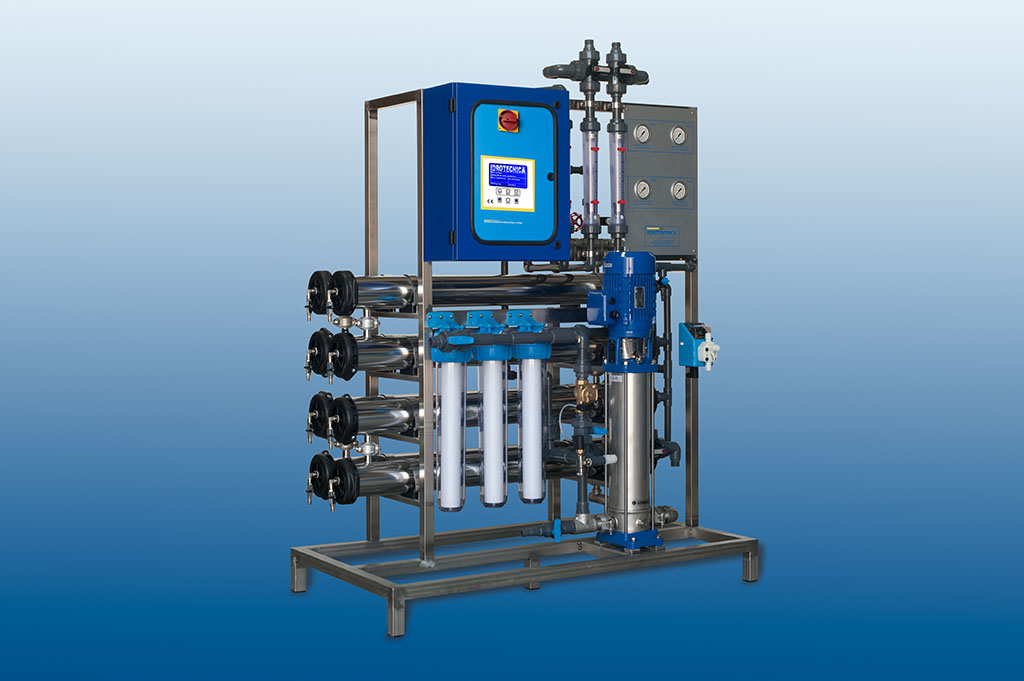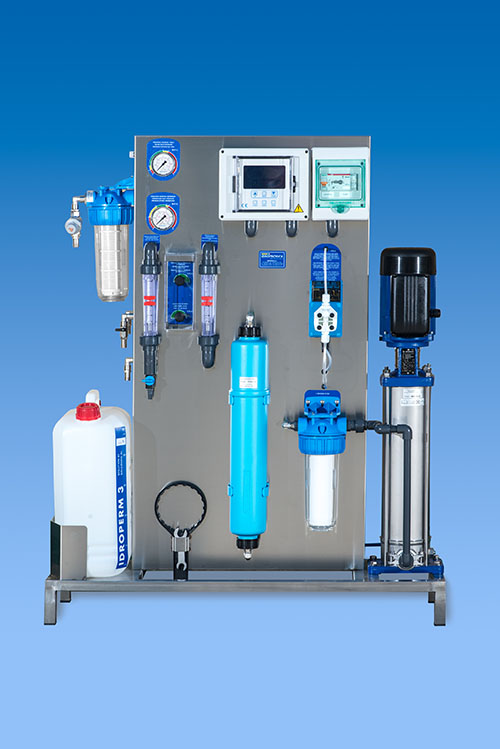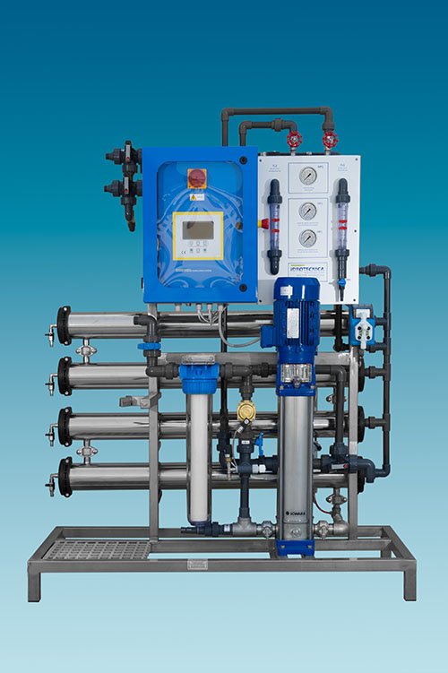 • série IDRO RO DPS avec le processus de l'osmose inverse à double étage (bi-osmose) pour la production d'eau à très faible conductivité pour des applications spéciales.